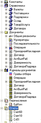 Окно дерева метаданных конфигурации выглядит следующим образом: