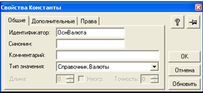 Однако следует учесть тот момент, что предприятие может заключить договор с иностранными поставщиками и подрядчиками, поэтому целесообразно создать справочник валют.