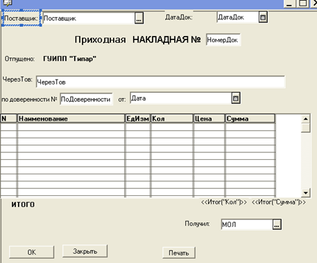 Были разработаны и оформлены документы, в соответствии с применяемыми эквивалентами на ГУИПП "Типар", а именно: приходная накладная, договора, акт выполненных работ, доверенность. Данные документы автоматически учитываются в соответствующих журналах. Названия журналов соответствуют названиям учитываемым в них документам.
