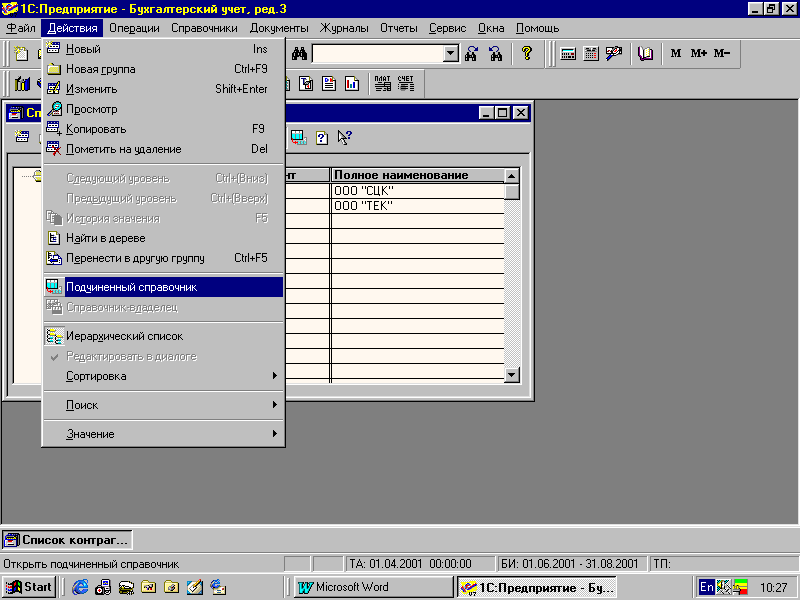 Запуск программы: Пуск/Программы/1С:Предприятие 7.7/1С:Предприятие