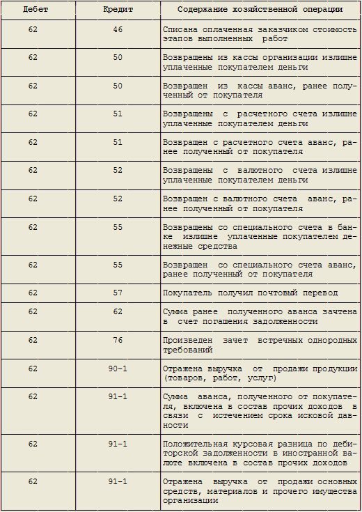 Таблица 5 Типовые проводки, осуществляемые в ООО "Рапира" по дебету счета 62 "Расчеты с покупателями и заказчиками"