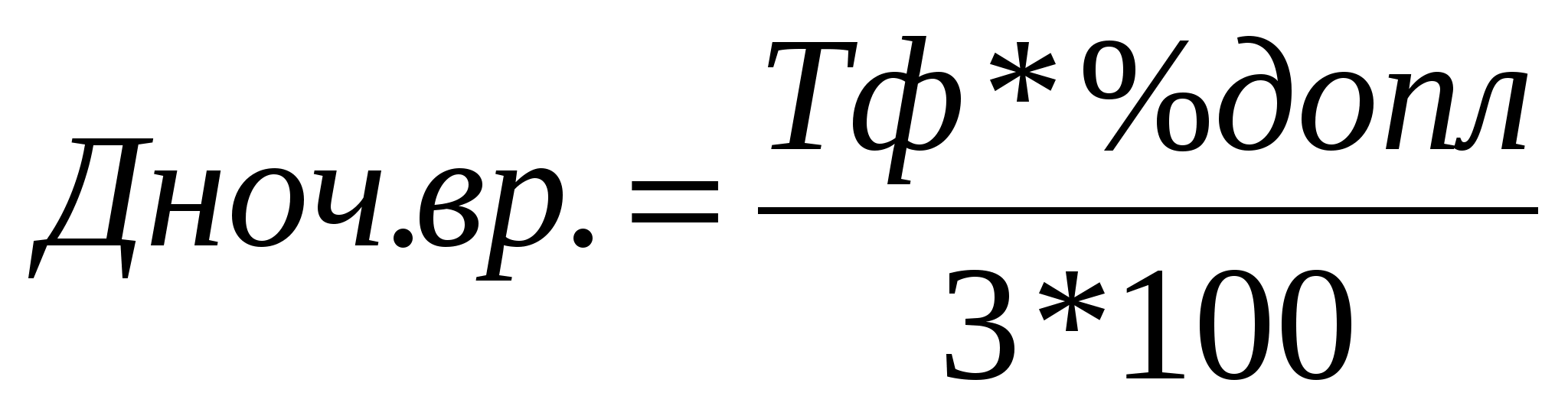 Определяется доплата за работу в ночное время, Дноч.вр., руб., по формуле: