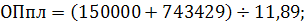 Подставив данные в формулу, при условии, что предприятие планирует получить прибыль в размере тех же 150000 рублей, получим: