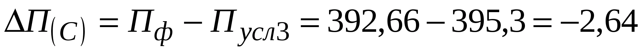 Найдем сумму прибыли при фактическом объеме остальных факторов. Для этого рассчитаем процент выполнения плана по реализации продукции (Кпр) и скорректируем плановую сумму прибыли на этот процент: