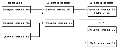 Центром аудита цикла продажи товаров является подтверждение дебета и кредита счетов 90 "Продажи", 99 "Прибыли и убытки". Проверке, соответственно, подвергаются корреспондирующие счета: кредит счетов 44 "Расходы на продажу", 41 "Товары", дебет счета 62 "Расчеты с покупателями и заказчиками".
