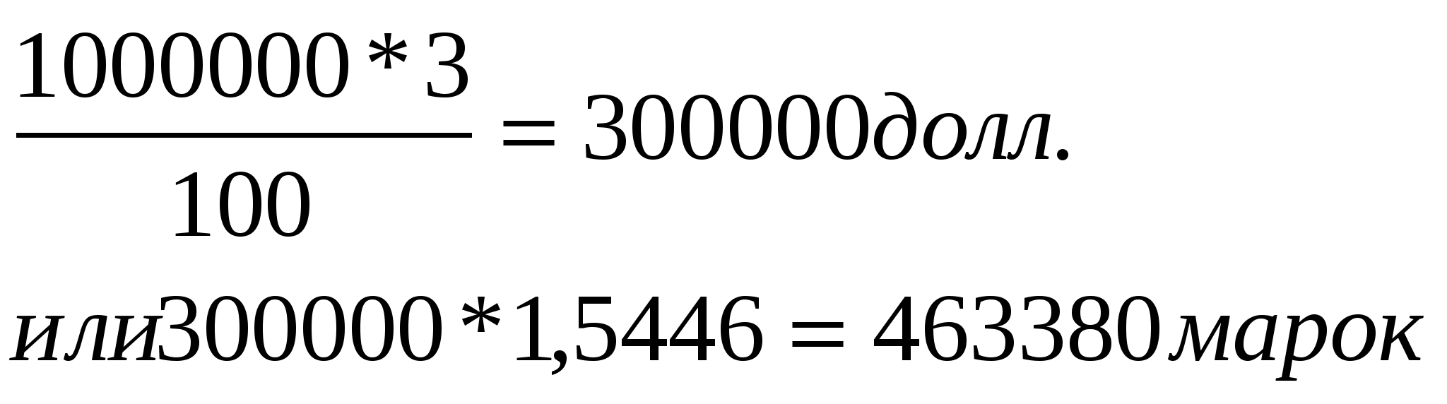 ( 1.5039 - 1.3966 ) х 10000000 = 1073000 марок
