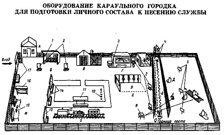 12. Парки оборудуются между задней линейкой и дорогами для техники, на флангах или перед фронтом лагеря. Участки для парков определяет командир соединения или части.