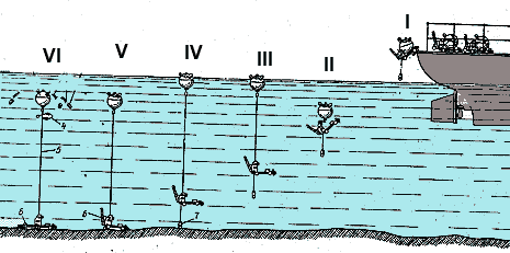 Донные мины устанавливаются на дно водоема. Якорные мины устанавливаются при помощи якорного устройства с определенным заглублением.