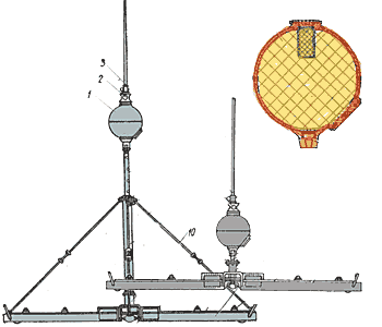 Подставка для установки мины на глубинах 2,4-3,8 м собирается из разъемной крестовины, металлических листов, телескопической стойки и 4-х растяжек.