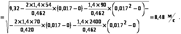 На пятом участке происходит отражение гильзы. Для упрощения примем, что отражение гильзы происходит мгновенно, а не на 2 мм. Таким образом, пятый участок из расчета выпадает, тогда скорость в начале шестого участка будет: