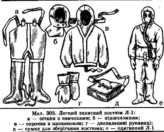 Засоби індивідуального захисту (313) використовуються для захисту людини від отруйних речовин, сильнодіючих отрут, радіоактивних речовин і бактеріологічних засобів і за своїм призначенням діляться на засоби захисту органів дихання та засоби захисту шкіри.