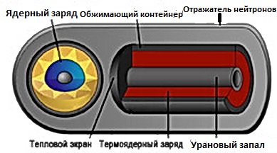 Строение термоядерной бомбы лучше рассмотреть на схеме Теллера-Улама: