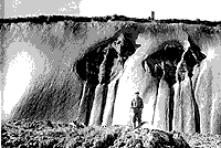 Рис.1.Крупные ледяные жилы в вечномерзлых породах.Хребет Кулар, Северная Якутия