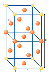 Рис. 3. Тетрагональная струк- тура Fe7S-возможного компо- нента внутреннего (твердого) ядра, по Д.М. Шерману (1997)