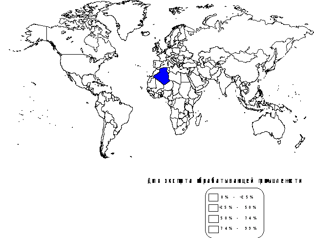В своей работе, я рассмотрела 120 стран, разделив их на 4 группы, в зависимости от доли в мировом экспорте обрабатывающей промышленности и сделав необходимые выводы и нанеся их на карту мира2. Надо сказать, что основную часть своей работы я построила как объяснение распределения данного показателя по карте мира. При составлении работы я использовала статистику Мирового Банка, доклад Йорга Майера (Институт Мирового Банка) по положению стран в мировой торговли от 17-19 марта 2003г., а также некоторую литературу.