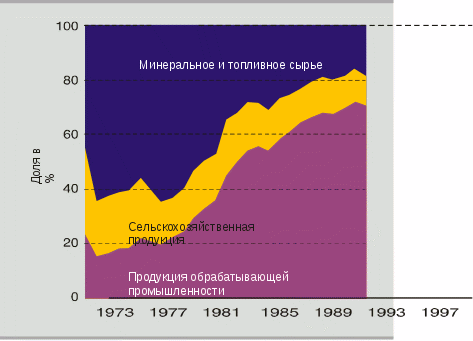 Товарная структура экспорта развивающихся стран за 1973-1999г.
