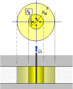Основной принцип расчета размеров II/III поясов: граница каждого пояса - это изохрона, т.е. совокупность точек, из которых загрязнение достигает водозабора через заданный расчетный промежуток времени. Разница II и III поясов - как раз в величине этого расчетного промежутка времени.