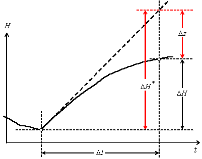 Рис. 3. Теоретический и фактический подъем уровня за период питания |