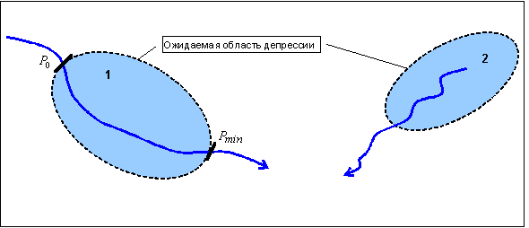 Итак, для реального учета возможного количества ЕР при использовании балансового метода оценки эксплуатационных запасов необходимо принять (на основе гидрогеодинамических соображений) какой-то реальный размер ожидаемой депрессионной воронки и уже только для этой площади оценить, какие очаги разгрузки потока в нее попадают.