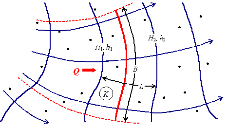 В гидрогеодинамическом смысле задача подсчета заключается в том, чтобы рассчитать понижение уровней в водозаборной скважине (или в системе скважин) и сравнить его с допустимой величиной. Идеология подсчета базируется на основном физическом принципе взаимосвязи между величиной работы, выполняемой в среде с определенным сопротивлением, и необходимыми для этого затратами энергии. Применительно к большинству потоков подземных вод этот принцип воплощается в линейном законе фильтрации (законе Дарси):