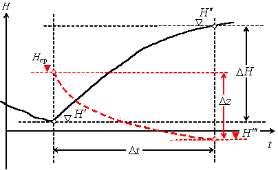 Нередко после подъема фиксируется период стационарного режима уровней, хотя питание продолжается; это свидетельствует о наступившем равновесии расхода притока к блоку и оттока к дрене: