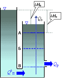 Хотелось бы надеяться, что у внимательного читателя уже возник принципиальнейший балансовый вопрос: а почему же уровень в смежном сосуде -"горизонте" остается постоянным? Действительно, картинка на рис. 1.7 не содержит информации о механизме собственного питания второй емкости. Какие варианты здесь возможны ?