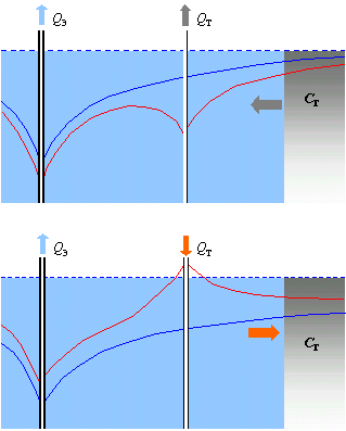 Техническая закачка -Q>т >(гидродинамический барраж)