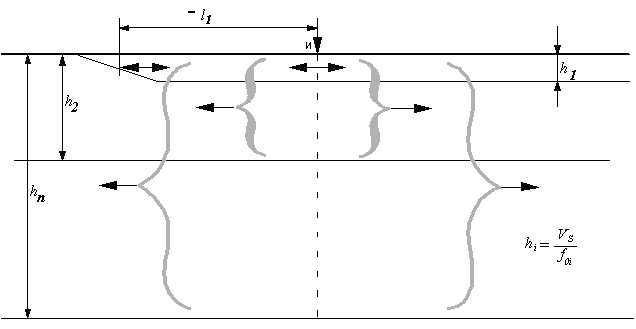 На первом этапе, было определено чисто эмпирически, что при работе в условиях существенно слоистых осадочных пород каждая из спектральных составляющих f>0> оказалась обусловленной породным слоем с толщиной h следующим образом:
