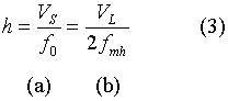 При этом получается, что эта скорость V>mh> примерно вдвое больше, чем скорость, обозначенная коэффициентом k, стоящим в числителе выражения (1). Скорость V>mh> примерно равна скорости распространения упругих волн поперек пластины, при ее сквозном прозвучивании3. Исходя из этих соотношений, можно предположить, что числитель выражения (2) - это скорость продольных (L) волн, а числитель выражения (1) - это скорость поперечных (S) волн. И тогда эти выражения (при n=1) можно записать в следующем виде: