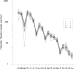 Химический анализ пород выполнялся в ИГЕМ РАН Ю.В. Долининой и О.Г. Унановой по методикам, принятым в ЦХЛ ИГЕМ РАН. Определение петрогенных оксидов рентгенофлюоресцентным методом проводилось в ЦХЛ ОИГГМ СО РАН (г. Новосибирск) на рентгеновском анализаторе VRA-20R. Для большинства петрогенных оксидов пределы обнаружения находятся на уровне 0,02-0,005%, и только для оксидов Mg и Na они значительно ниже (0,1 и 0,2% соответственно).