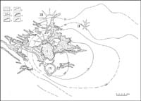 Кальдера Курильское озеро-Ильинская на юге полуострова образовалась в результате крупнейшего голоценового извержения с объемом выброшенного материала 140-170 км3 [22] Оно произошло ~7700 14С л.н., или ~6500 лет до н.э. Тефра этого извержения отлагалась в широком секторе преимущественно в западном и северо-западном направлениях (рис.5). В Магадане его мощность в разрезах составляет сейчас 5 см на расстоянии 1000 км от источника. На о.Онекотан, в 300 км к юго-западу от центра извержения, мощность пепла 8-10 см. Длина пирокластических потоков превышала 40 км, они доходили на западе до берега Охотского моря, а на севере до подножия вулкана Ксудач. Связанные с пирокластическими потоками пирокластические волны распространялись на расстояние более 50 км. Первичный объем полости кальдеры достигал, вероятно, 70-80 км3. На дне заполнившего кальдеру озера появились более 10 подводных и подводно-надводных экструзивных куполов. По объему пирокластики описываемое извержение превышает извержение Кракатау 1883 года минимум в 7-8 раз, что позволяет поставить его в один ряд с крупнейшими эксплозивными извержениями земного шара не только исторического времени, но и голоцена в целом. По своему климатическому эффекту оно было, по-видимому, сравнимо с самым мощным катастрофическим извержением XIX-XX веков - извержением вулкана Тамбора в 1815 году.