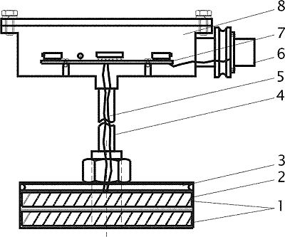 Блок электроники состоит из герметичного металлического корпуса 8 с коммутационным разъемом 6 и электронной платы 7, жестко закрепленной в корпусе.