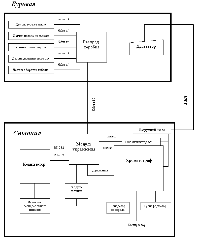 прием и оперативную обработку информации от датчиков технологических параметров бурения, расположенных на буровой;