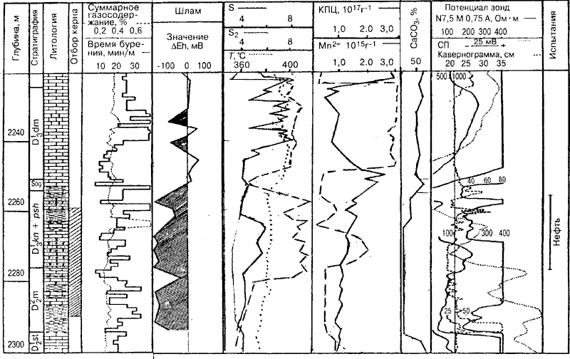 Обладая высокой восстановительной активностью, углеводороды нефтяного ряда характеризуются пониженными значениями потенциала Еh, что позволяет выявлять по этому принципу нефтенасыщенные породы-коллекторы [4].