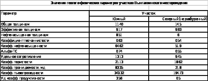 Северный участок рекомендовано [1] разбуривать с применением гидроразрыва пласта, так как эта зона характеризуется наиболее ухудшенными геологическими характеристиками и низкими фильтрационно – емкостными свойствами (таблица).