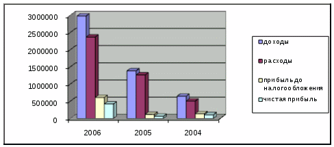 Рассматриваемый нами банк является небольшим по размерам активов и количеству филиалов. За данный период 2004-2005 гг. не наблюдалось каких-либо серьезных изменений в структуре банка. Анализируя отчеты о прибылях и убытках за последние 3 года, можно увидеть, что на протяжении этого периода банк имел положительный финансовый результат (прибыль). Причем объем чистой прибыли за 2005 год сократился на 41.02%, а за 2006 год вырос (по сравнению с 2004 годом) на 285.92%. Это говорит, с одной стороны, о неустойчивости финансового положения банка, а с другой- о грандиозном росте.