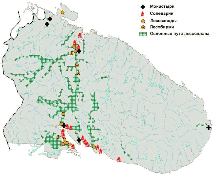 Люди «культуры морских охотников» оставили следы своей деятельности в основном по побережью и в устьях больших рек. Их основным занятием была охота на морского зверя и рыболовство. Появившиеся вслед за ними саамы жили уже и в центре полуострова, занимались охотой, рыбной ловлей, и, впоследствии, оленеводством. Их воздействие на леса было незначительным, в частности потому, что их культуре было свойственно очень бережное и осторожное обращение с огнем. Потребление леса резко усилилось в XV-XVI вв., в связи с расселением поморов и основанием монастырей. Основными потребителями древесины были солеварни, на выварку 1 пуда соли в которых уходило около 1 кбм. дров. Основными районами солеварения на Кольском Севере являлись селения по берегам северо-западной части Белого моря и Кольского залива. По мере истребления лесов вокруг варниц их производительность сокращалась, предприятия становились малодоходными и, затем, прекращали свою деятельность. По-видимому, именно солеварение стало причиной исчезновения наименее устойчивых сосновых лесов по северным рекам полуострова.