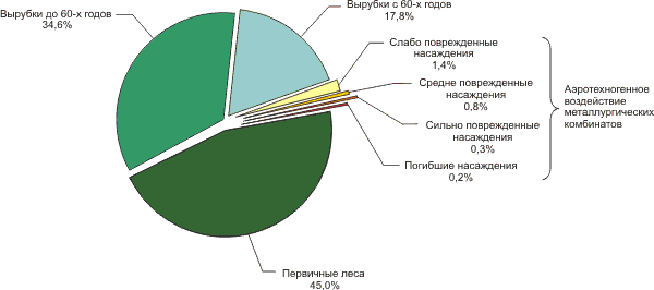 Распределение лесов Мурманской области по типам антропогенной нарушенности (без учета пожаров)5