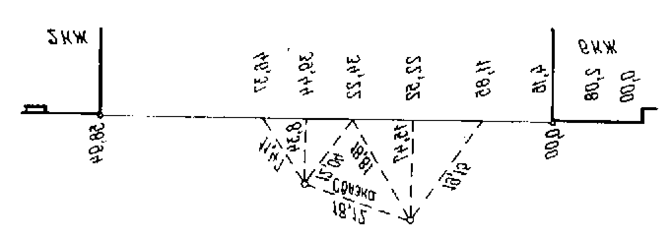 измерить кратчайшие расстояния от ориентирной линии до точек пересечения прокладки со стенами колодца, а также до возможных изломов трубопровода внутри колодца.