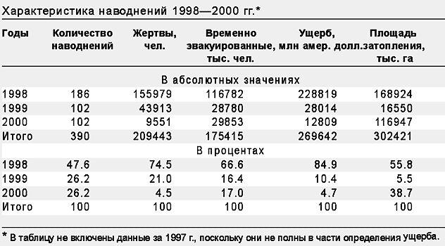 Заметна связь повышения температуры с частотой и размерами наводнений. Так, ущерб от них за 1998 г. - самый теплый год минувшего века, когда среднегодовая температура в Северном полушарии составила 16.6°С, - существенно превысил суммарный ущерб за 1997, 1999 и 2000 гг.