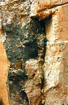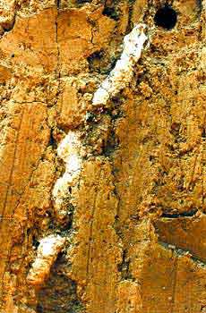 Крупная почвенная пора, заполненная карбонатом кальция. |