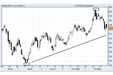 Графики колебания цены на акцию ОАО "Газпром" на ММВБ.