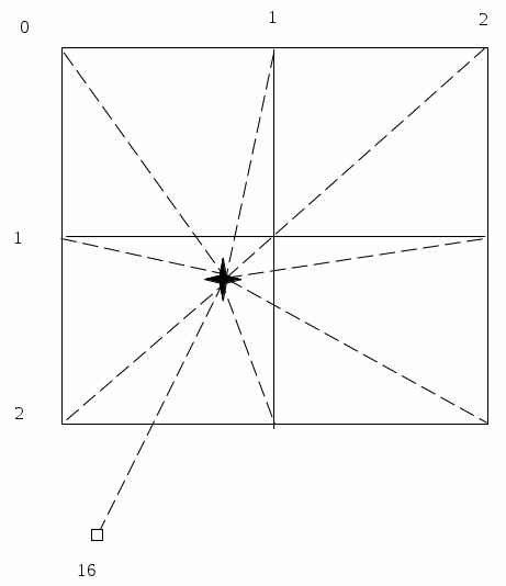 По направлению визирного луча отмечают