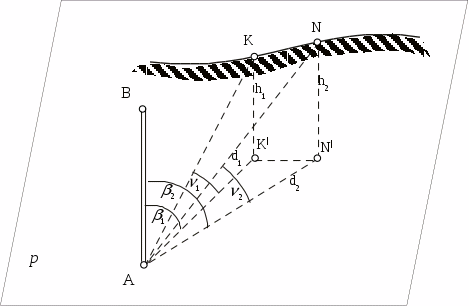 На местности разбивают базис b>1> и измеряют его несколькими приемами в точках А и В устанавливают теодолит и измеряют горизонтальные углы >> и >2> одним полным приемом. Затем вычисляют горизонтальные расстояния L>1> и L>2>: