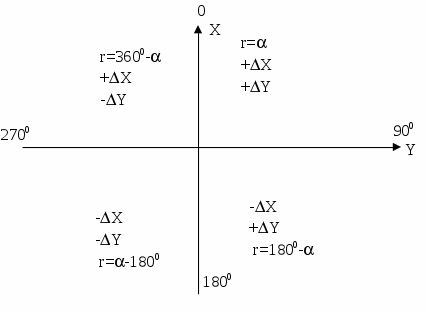 горизонтальному кругу отсчет: