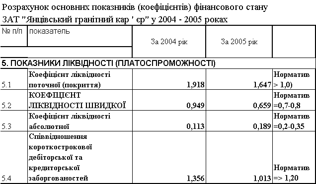 2.2 Процедури оцінки фінансового стану позичальника ВАТ “Янцівський гранітний кар'єр” для видачі короткострокового кредиту в оборотні кошти