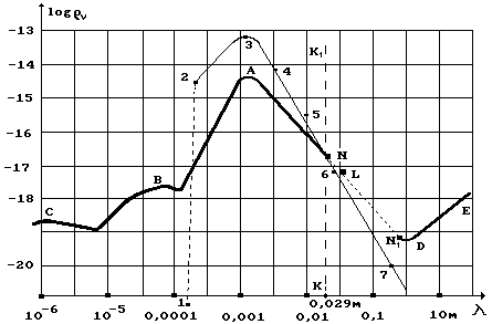 Рис. 1. Зависимость плотности реликтового излучения Вселенной от длины волны: