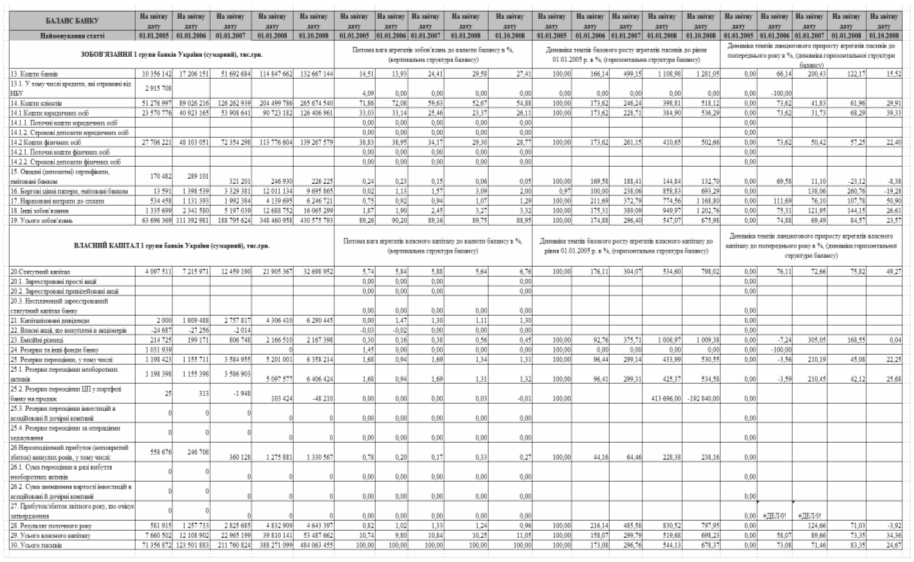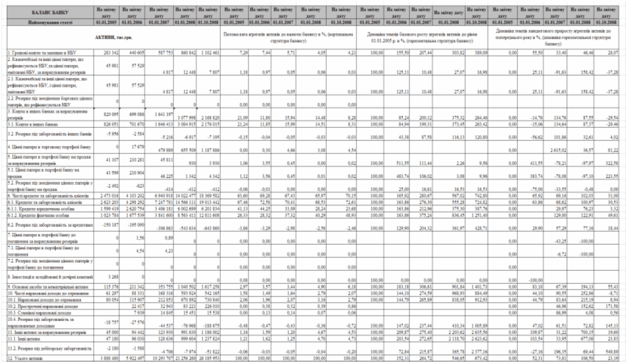 2. Загальний аналіз динаміки структури балансу, прибутковості та рентабельності роботи ВАТ КБ “НАДРА” у 2004 –2008 роках