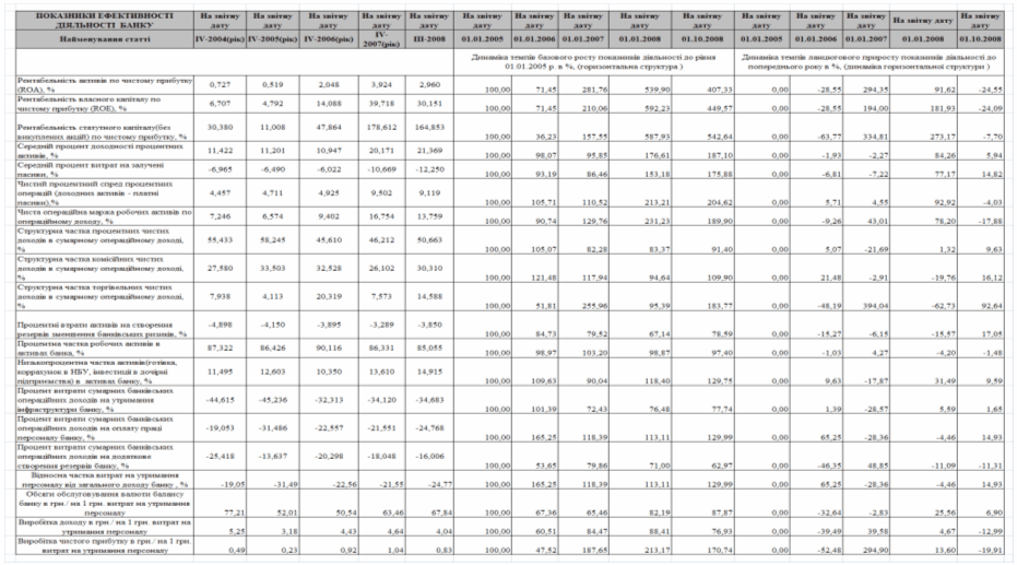 Аналіз ефективності банківських операцій в комерційному банку ВАТ КБ "Надра" в 2004–2008 рр