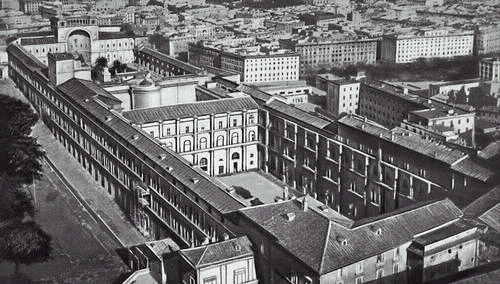 Во дворцах — Ватиканская библиотека (с уникальным собранием рукописей), музеи античной скульптуры (Пио-Клементино, Кьярамонти и Новый корпус), Грегорианские египетский и этрусский музеи и др. В садах Ватикана — Казино Пия IV (1558, архитектор П. Лигорио), здание Ватиканской пинакотеки (собрание итальянской живописи до 17 в.) и др. На территории Ватикана находятся покои папы, радиостанция, типография, почтамт и т.д. Собственностью Ватикана являются также раннехристианская базилики 4 в. — Сан-Джованни ин Латерано, Санта-Мария Маджоре и Сан-Паоло фуори ле Мура, — Латеранский дворец (16 в.) и др. здания в Риме, летняя резиденция папы в Кастель-Гандольфо (17 в.).